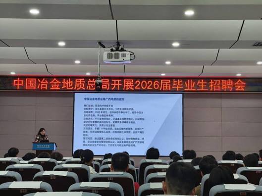 2025年10月25日上午,中国冶金地质总局2026届毕业生专场招聘会在我院雁山校区01501报告厅顺利举行。本次招聘会由我院与单位协同组织,旨在搭建优质就业平台,助力毕业生高质量就业,吸引了来自伟的国际1946bv、测绘地理信息学院、环境科学与工程学院等100多名毕业生踊跃参与。