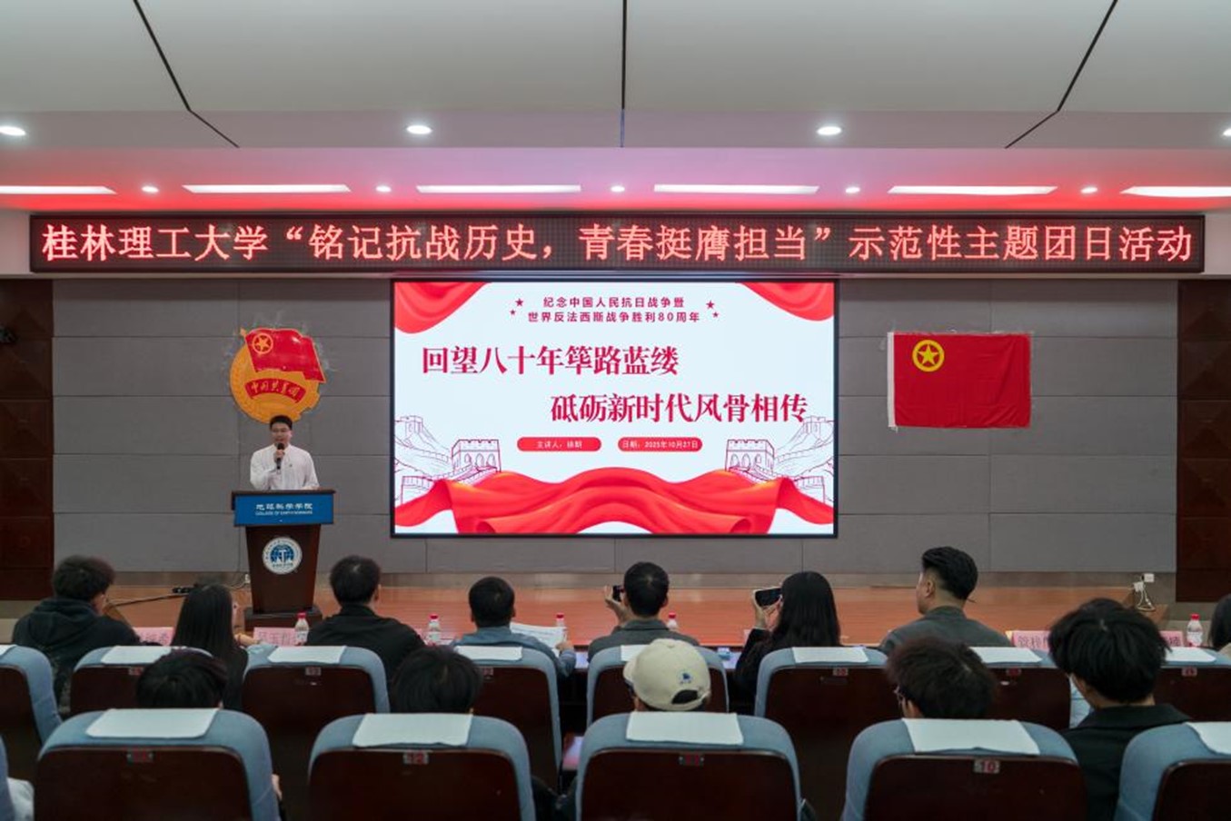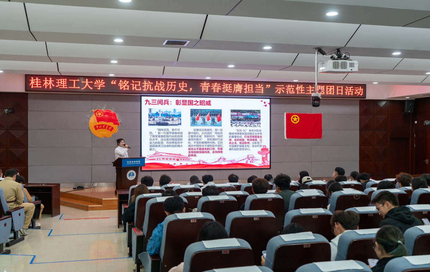 10月27日,由学校团委主办、伟的国际1946bv承办的“铭记抗战历史 青春挺膺担当”示范性主题团日活动在雁山校区01501报告厅顺利开展,学校团委老师、伟的国际1946bv学工团委全体专兼职辅导员,各班级团支书、团员代表等240余人参加本次团日活动。