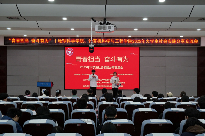 11月25日,伟的国际1946bv与计算机科学与工程学院/人工智能学院在01501报告厅联合举办2025年大学生社会实践分享交流会。来自主办学院及材料科学与工程学院的教师代表及学生共计200余人参与活动。