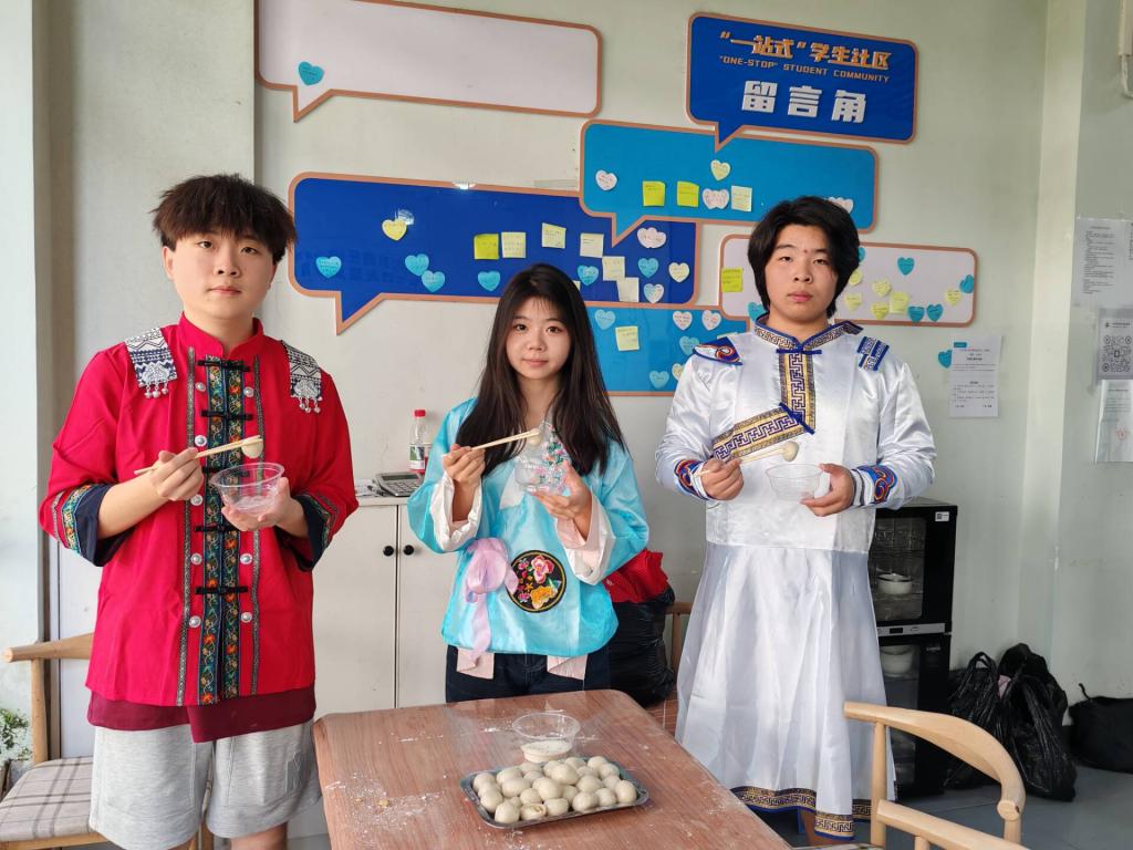 4月11日,学院自强社和“睛”彩石榴籽辅导员工作室组织20余名受助学生在明园共享厨房组织开展“民族团结一家亲”主题美食分享活动。