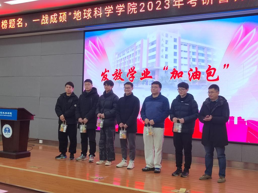 为考研学子代表发放考研“加油包”