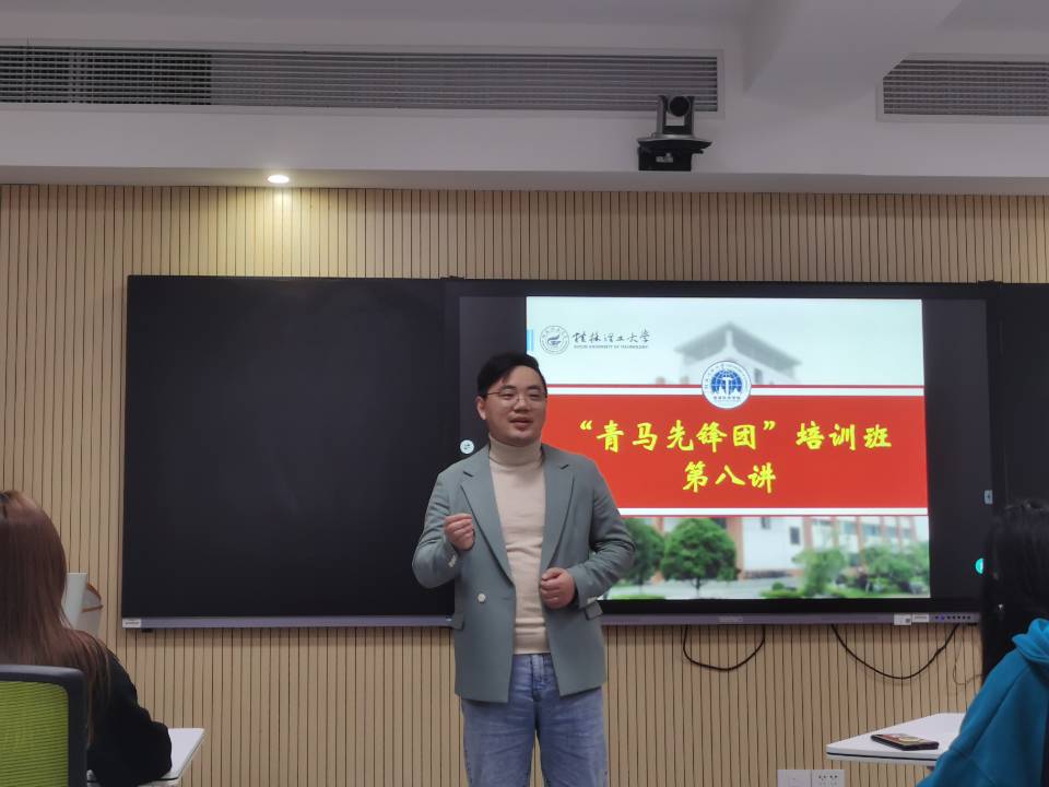 为正确引导我院学生干部的工作方法,2022年3月30日晚,我院于雁山校区逸夫楼01404智慧教室召开“青马先锋团”素质能力提升培训班第八讲,本次活动由材料学院团委书记赵思聪主讲,我院团委书记吴田波以及青马先锋团全体学员参加本次培训。