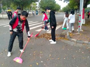 志愿者清扫校道