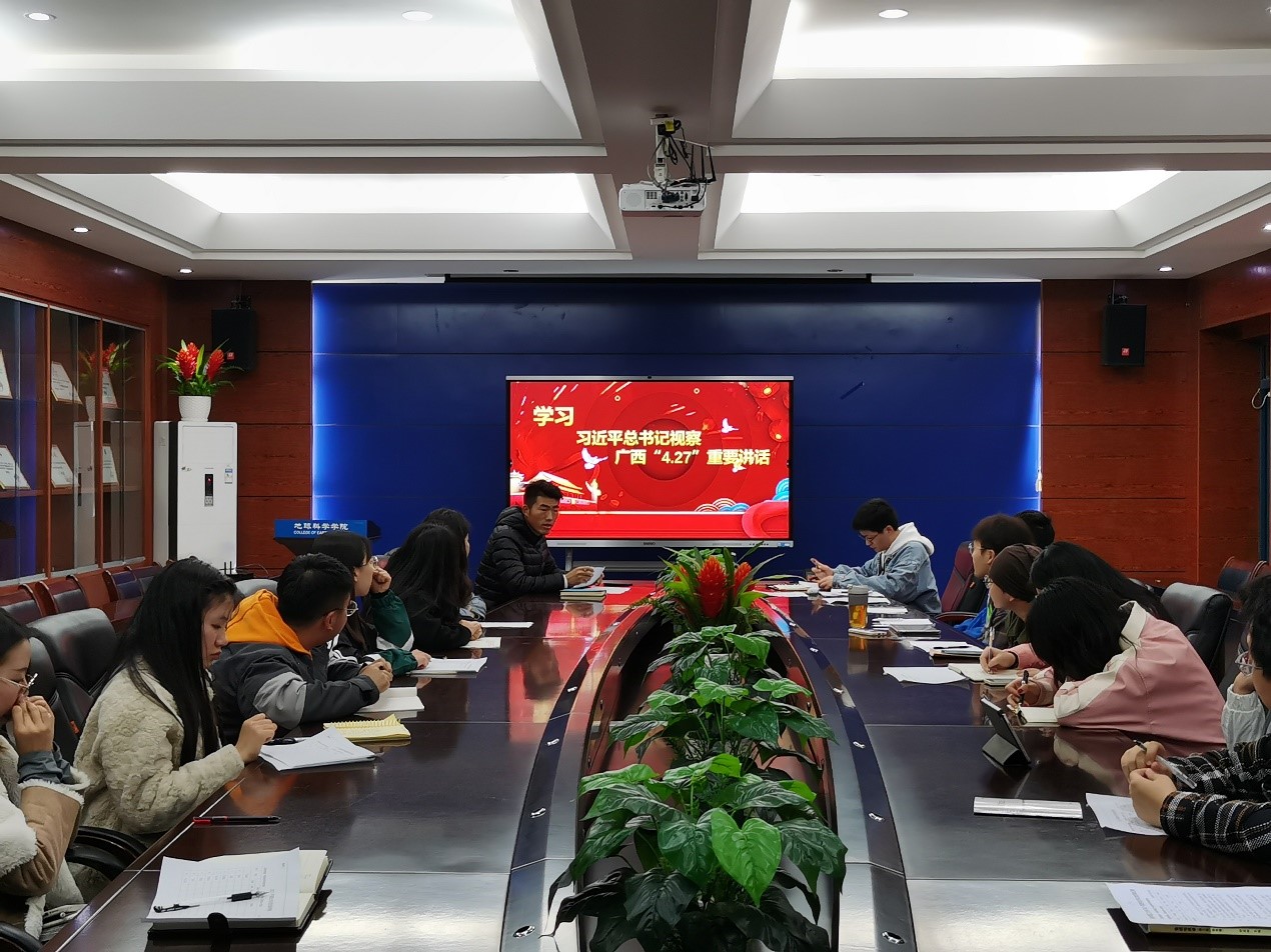 首先,支部书记王成瑞同志组织全体党员观看了习近平总书记在广西4.27重要讲话的相关报道。其次,支部副书记纪东如同志与全体党员同志就纪录片展开心得交流。“总书记指出,学史增信,就是要增强信仰、信念、信心,这是我们战胜一切强敌、克服一切困难、夺取一切胜利的强大精神力量。” 广大党员表示,一定牢记习近平总书记嘱托,切实增强对实现中华民族伟大复兴的信心,牢记初心使命、增强必胜信心,奋力谱写全面建设社会主义现代化国家的篇章。