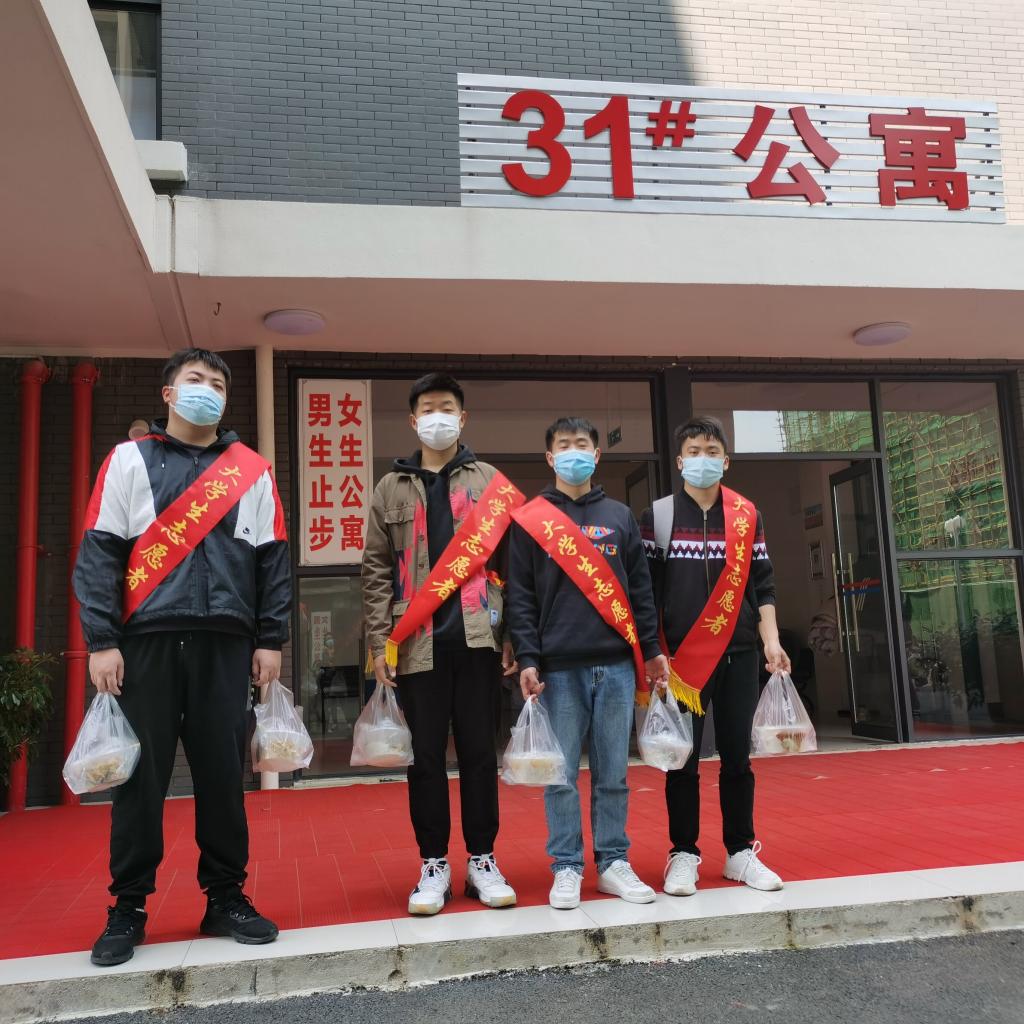 每到饭点,学院不但给在观察点的学生统一免费订餐,还贴心的照顾到不同学生的饮食习惯,我们的志愿者同志也会根据不同需求,按时前往食堂购餐并送往健康观察点。持续半个多月的送餐,我们志愿者们每天不畏辛苦、热情服务的精神让观察点同学记忆尤深,同学们深深感受到了学院的关心爱护以及志愿者们的热情和奉献。
