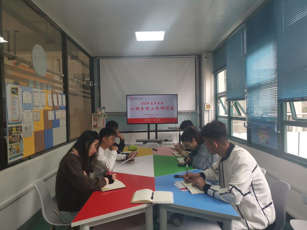 3月11日,学院在雁山校区逸夫楼二楼多功能会议室召开2022年春季学期心理专项工作研讨会,会议由学院学工组长陈文甫主持,全体辅导员参加此次研讨会。