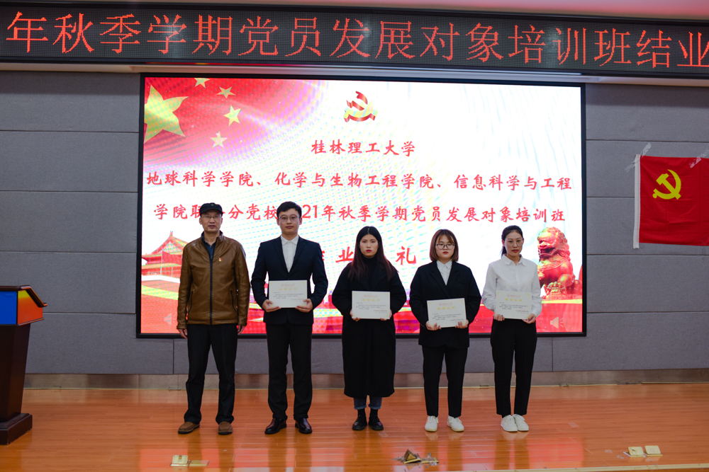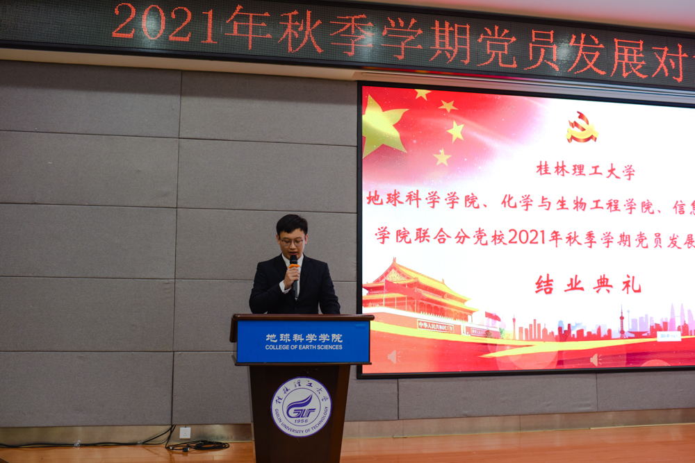 11月24日,由我院牵头的伟的国际1946bv、化学与生物工程学院、信息科学与工程学院联合分党校2021年秋季学期党员发展对象培训班在01501报告厅举行结业典礼。闫安明、熊艳、黄行健老师和全体党员发展对象参加典礼,典礼由伟的国际1946bv党建组织员吕思慧同志主持。