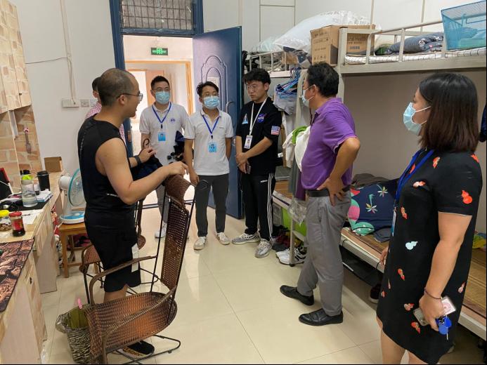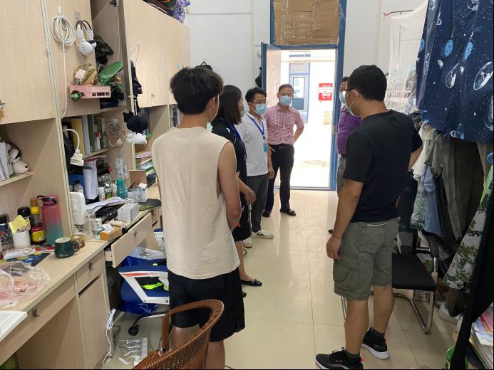 院领导一行深入学生宿舍,详细地了解了学生的返校情况,亲切询问到校学生返校路上是否顺利、学校生活是否愉快、上课准备是否充分、宿舍是否存在安全隐患等,提醒同学们宿舍要勤通风、按时打扫卫生,让自己有一个健康的体魄来迎接学习的挑战。